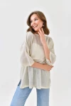 Kadın Kazak Bisiklet Yaka Kısa Kollu Delikli Kadın Kazak Kemik - 10763