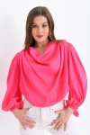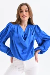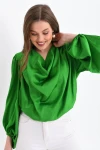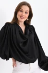 Kadın Gömlek Degaje Yaka Dökümlü Saten Gömlek Kadın Gömlek Siyah - 33026