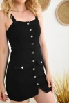 ASKILI DÜĞMELİ CEPLİ DAR KESİM MİNİ ELBİSE