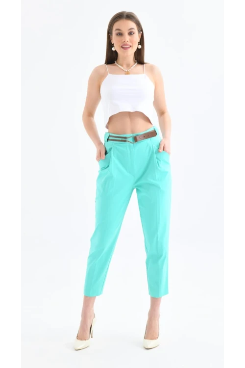 KADIN MİNT Deri Kemerli Dar Paça Pantolon