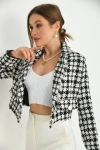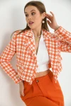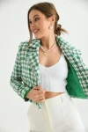 Kadın Ceket Düğme Detaylı Tüvit Crop Blazer Ceket Bej - KRN37