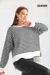 Kadın Kazak Çizgili Yuvarlak Yaka Kazak Siyah - 224520