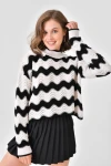 Kadın Kazak Delikli Bisiklet Yaka Kazak Siyah - 8086SW