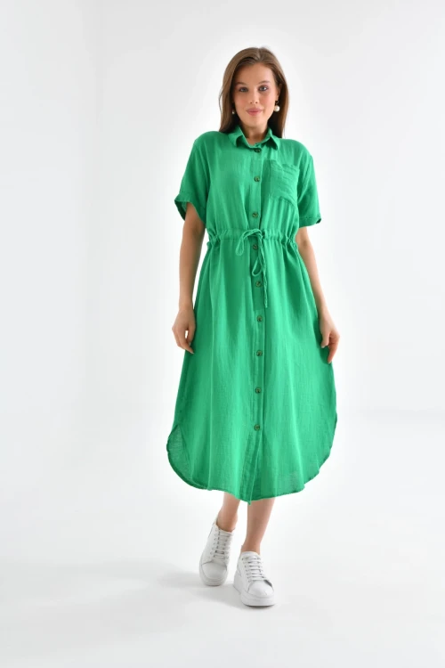 Parkkaron Dokuma elbise, kumaşın sıcaklığı ve konforu ile birleştiğinde detayları ile daha zarif bir görünüm kazandırır.