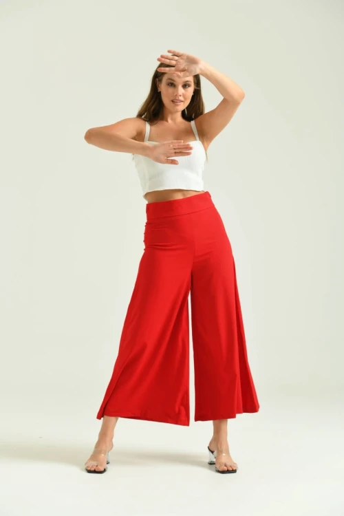 Kadın Pantolon Belden Lastikli Yandan Fermuarlı Cepsiz Etek Likralı Kadın Pantolon Kırmızı - T020