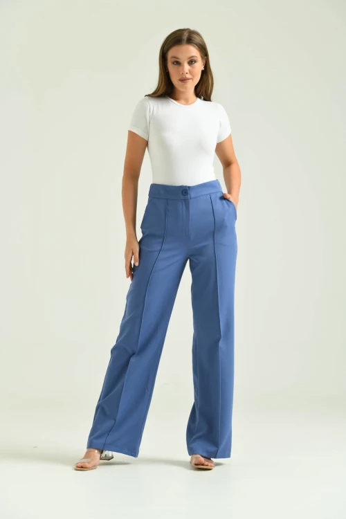 Kadın Indıgo Yüksek Bel Palazzo Pantolon