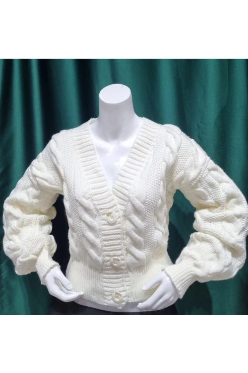 V YAKA DÜĞMELİ TEK RENK DESENLİ KISA TRİKO CEKET