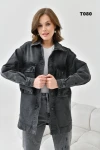 Kadın Kot Ceket Çift Cep Uzun Kadın Kot Ceket Antrasit - T080