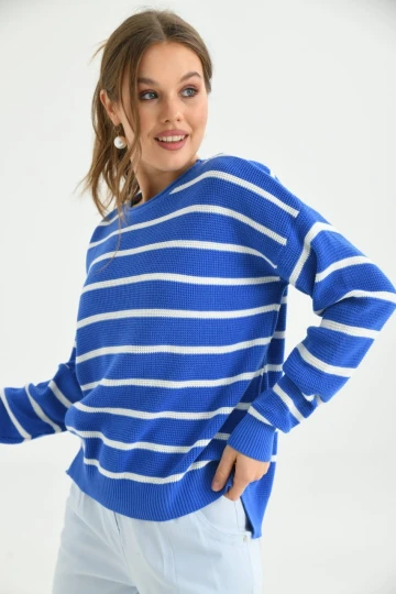 BİSİKLET YAKA ÇİFT RENKLİ KAZAK