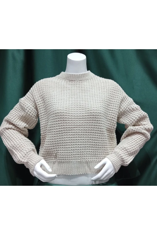 Kadın Kazak Bisiklet Yaka Tek Renk Örme Kazak Bej - 225004