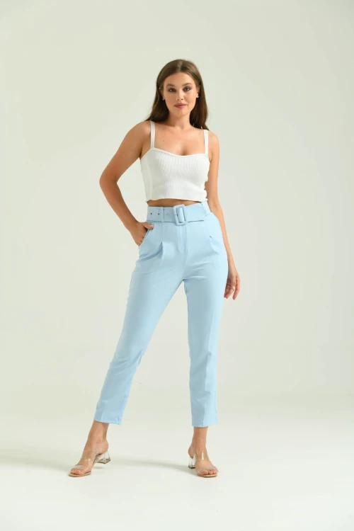 Kadın Pantolon Kemer Detaylı Basic Kadın Pantolon Mavi - T018