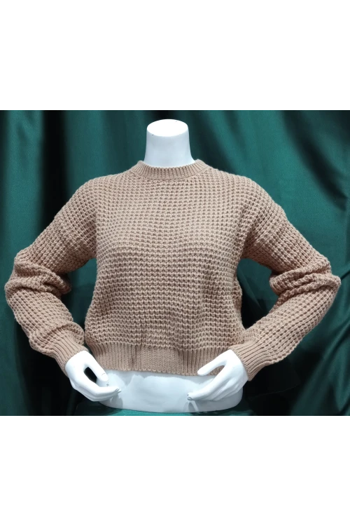 Kadın Kazak Bisiklet Yaka Tek Renk Örme Kazak Camel - 225004