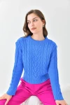 Kadın Kazak Örme Desen Detaylı Bel Boy Bisiklet Yaka Kazak Siyah - 6006
