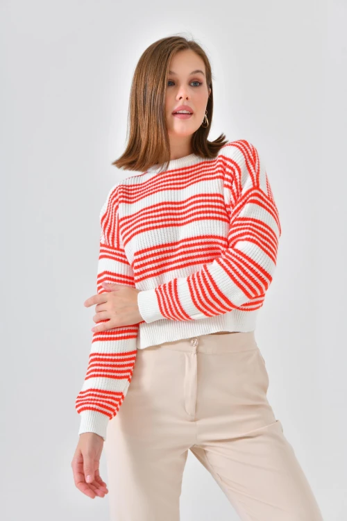 KADIN NAR BİSİKLET YAKA ÇİFT RENK ÇİZGİLİ MODEL KAZAK