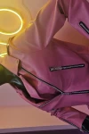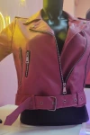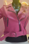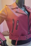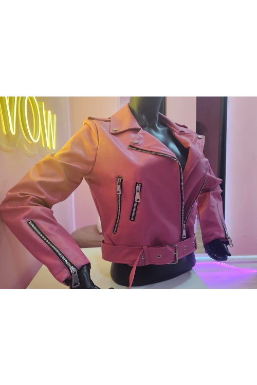 Kadın Mont Çok Cepli Bel Kemer Detaylı Deri Mont Pembe - M020