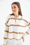 Kadın Kazak Polo Yaka Fermuarlı Kazak Pembe - 10118