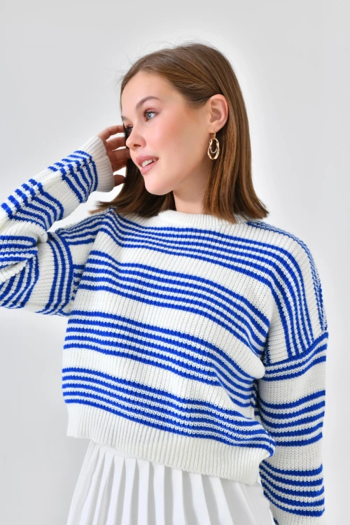 BİSİKLET YAKA ÇİFT REN ÇİZGİLİ MODEL KAZAK