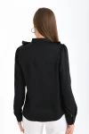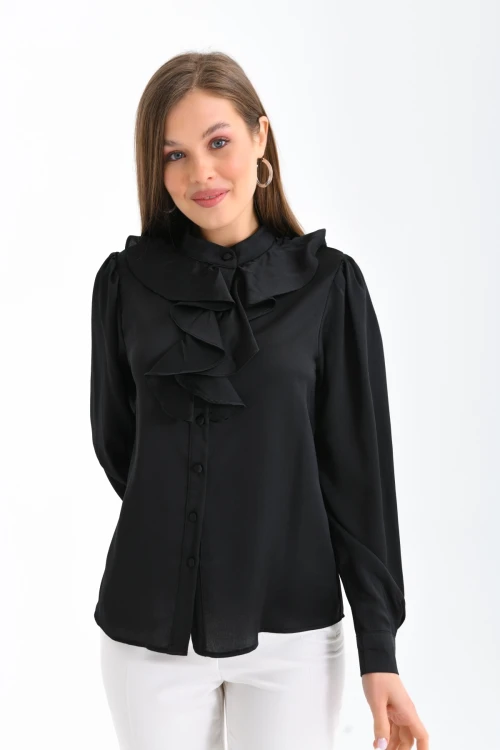Kadın Gömlek Pudra Volan Yaka Saten Gömlek Siyah - 33033
