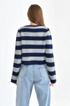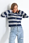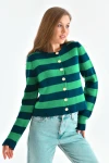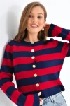 YAKASIZ DÜĞME DETAYLI ÇİFT RENK ÖRME CEKET