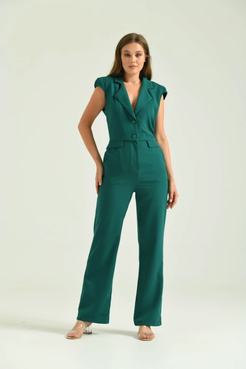Kadın Tulum Elbise Ceket Yaka Kumaş Tulum Elbise Yeşil - T106