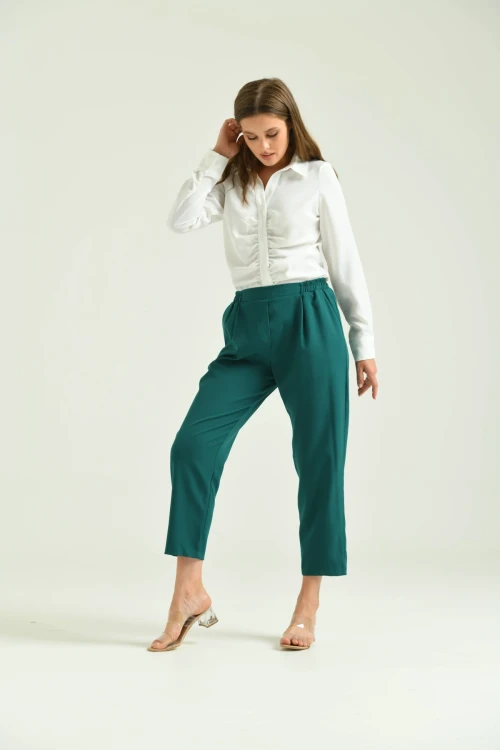 Kadın Pantolon Bel Lastikli Rahat Pantolon Zümrüt - T116