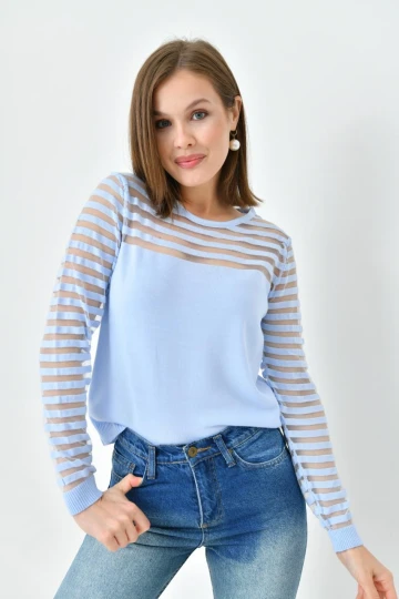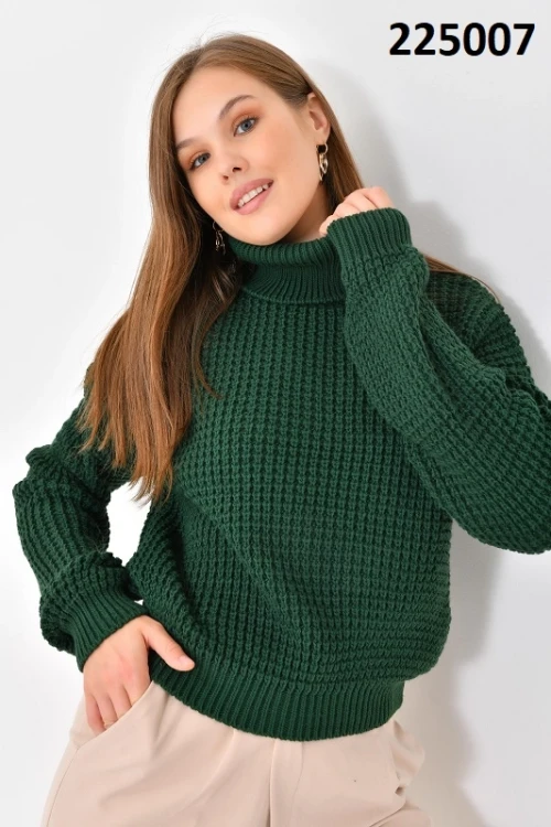 BOĞAZLI BEL VE KOL LASTİKLİ TRİKO KAZAK