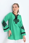 Kadın Bluz Desenli V Yaka Bağlamalı Kadın Bluz Nar - 23100