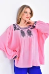 Kadın Bluz Yuvarlak Yaka Yaka ve Bilek İşlemeli Bluz Kadın Bluz Yeşil - 33032