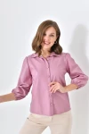 Kadın Deri Gömlek Kol Ucu Lastikli Düğmeli Cepsiz Deri Gömlek Haki - 10059