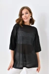 Kadın Kazak Bisiklet Yaka Kısa Kollu Delikli Kadın Kazak Kemik - 10763