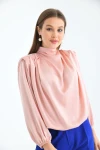 Kadın Gömlek Arkası Fermuarlı Vatkalı Omuz Dökümlü Saten Gömlek Fuşya - 30050