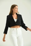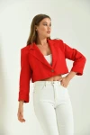 Kadın Blazer Ceket Tek Düğmeli Vatka Detaylı Kol Katlamalı Kadın Blazer Ceket Pembe - T032
