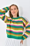 BİSİKLET YAKA ÇOK RENK BEL KOL LASTİKLİ TRİKO KAZAK