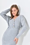 Kadın Ceket Askılı Elbise Triko Takım Kemik - 8009