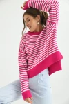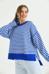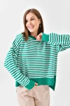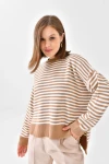 Kadın Kazak Çizgili Yuvarlak Yaka Kazak Pembe - 224520