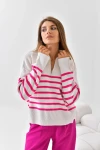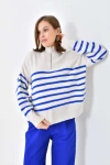 YAKALI FERMUARLI ÇİZGİLİ DESENLİ KAZAK