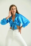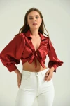 Kadın Saten Gömlek Önden Bağlamalı Vatkalı Saten Gömlek Lila - T092