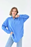Kadın Gömlek Müslin Kumaş Cepli Uzun Kollu Kadın Gömlek Fuşya - 23010