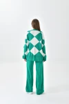 UZUN BOY BİSİKLET YAKA BÜYÜK BAKLAVA DESENLİ TEK RENK PANTOLONLU TAKIM
