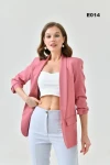 Kadın Blazer Ceket Tasarım Kol Büzgülü Çizgi Desenli Taş Renk - E014