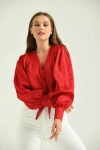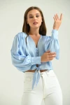 Kadın Gömlek Balon Kol Belden Bağlamalı Kadın Gömlek Yeşil - T030