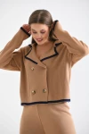 KADIN ZÜMRÜT YAKALI DÜĞMELİ YAKA BEL VE PAÇA ÇİZGİLİ TRİKO TAKIM